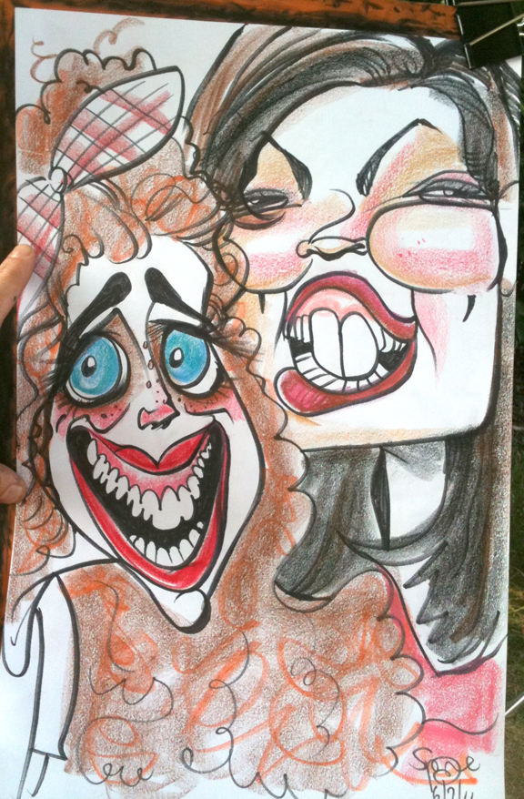 Okay, here's where things get scary - these were done at the annual 'Project Graduation' I do with a whole bunch of other artists, and once again, I had a blast! And as you can see from most of the faces here, they did too! i get to go quite a bit wilder with my drawings at these events because students and young adults are often very receptive to this style, especially in a big, celebratory, party atmosphere. So here's some of them, with more to come!